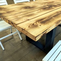 Den Tisch bieten wir sowohl (wie hier gezeigt) in hell flambiert, als auch in dunkel-lasiert an.