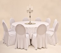Set Bankett 1x Tisch rund 180cm inkl. Tuch weiß, 10x Stuhl mit Husse optimal weiß
