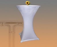 Diese Stehtische können Sie hervorragend mit ebenfalls bei uns erhältlichen Stretch-Hussen ausstatten. Jeder Tisch sieht in windeseile komplett anders aus. (Siehe Fotos: weiß, blau, schwarz, rot)