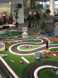 Wer wird den Grand Prix Ihres Unternehmens gewinnen? Ermitteln den schnellsten Mitarbeiter oder den Kunden mit der besten Renn-Strategie! Die Rennbahn kann mit bis zu 4 Piloten auf 4 Spuren befahren werden.
