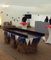 Versuchen Sie auf einer originalen Maßkrugbahn den Maßkrug möglichst auf den 10Punkte-Bereich zu schieben, ohne das der Inhalt heraus schwappt. Der richtige Schwung und eine ruhige Hand sind der Schlüssel zum Erfolg. Unser geschulter Mitarbeiter sorgt für einen reibungslosen Ablauf und fungiert gleichzeitig als Schiedsrichter.