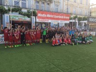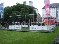 Stabiler und TÜV-/GS-geprüfter Soccer Court in verschiedenen Größen. Vermarktung (Branding, Werbung) des Soccer Courts individuell möglich.