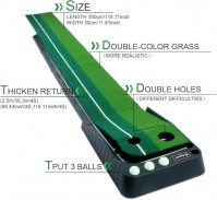 Minigolf Golf Putting Trainer 3 Bälle zweifarbige Grasgolfmatte mit kugelverdickter Rücklaufbahn automatische Funktion drinnen + draußen