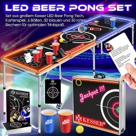 Bier Pong Beer Pong Tisch Set mit Kartenspiel Trinkspiel LED Action inkl. 100 Becher 6 Bälle + Regeln Partyspiele Tisch höhenverstellbar klappbar Classic mit LED + Kartenspiel Bierpong