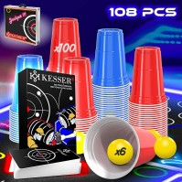 Bier Pong Beer Pong Tisch Set mit Kartenspiel Trinkspiel LED Action inkl. 100 Becher 6 Bälle + Regel