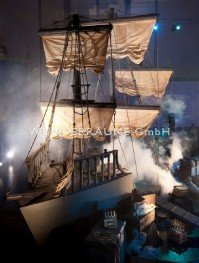 • Bühnenbild, Kulisse mit vielen Details (Koffer, Kisten, Taue etc.)