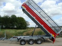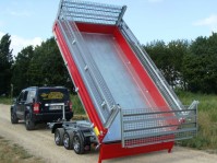 Dreiseitenkipper Dreiachser Hochlader 3500 kg gebremst E-Pumpe + Handpumpe – H-Gestell