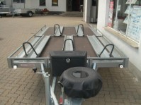 Motorradanhänger für 5 Motorräder 100 km/h neu 4x2m Profifahrzeug mit Staukasten und Reserverad 5 Standschienen verstellbar 2 Auffahrschienen Neufahrzeug