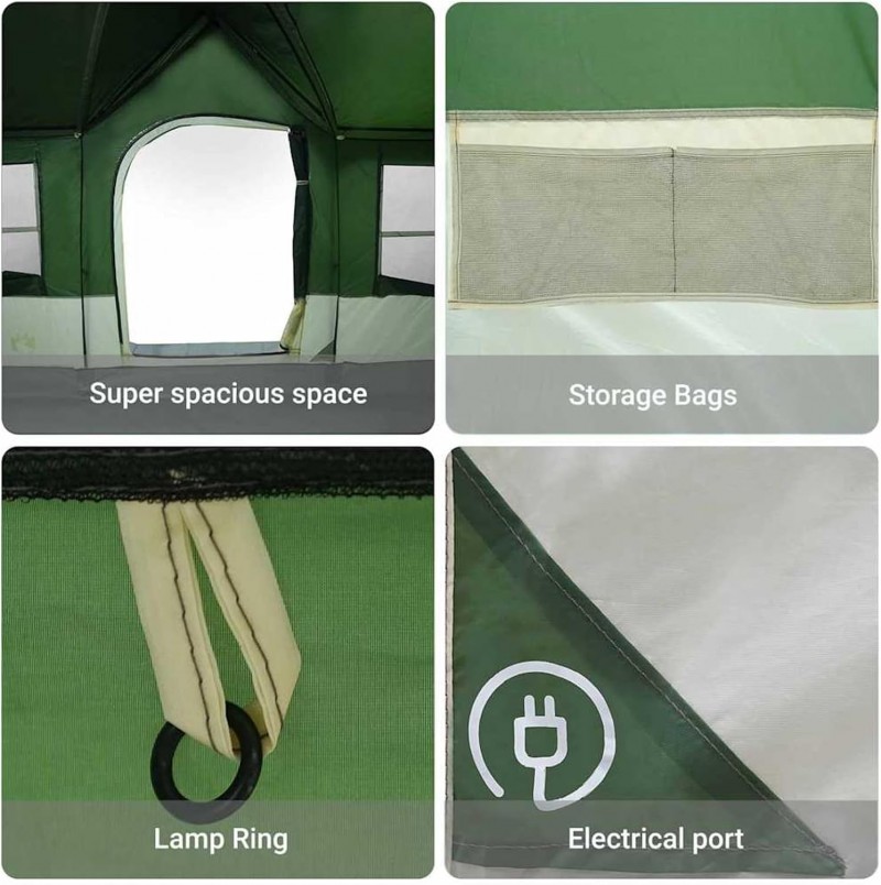 Camping Zelt Familienzelt Gruppenzelt Campingzelt 6220 x 2950 x 2380 mm Fenster grün bis 12-Personen wasserdicht Camping Reise Festival