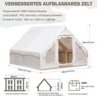 Glampingzelt aufblasbar 400 x 300 x 210 cm aufblasbares Campingzelt