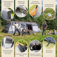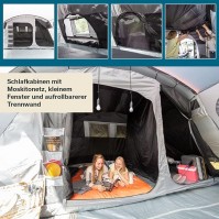 Tunnelzelt Familienzelt Hauszelt 28 qm für 12 Personen Großzelt mit 2 Schlafkabinen mit eingenähtem
