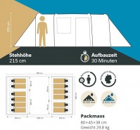 Das 28 m² große 12-Mann-Zelt hat eine Stehhöhe von 215 cm