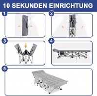 Campingliege zusammenklappbar, leicht, in nur zehn Sekunden zusammengeklappt
