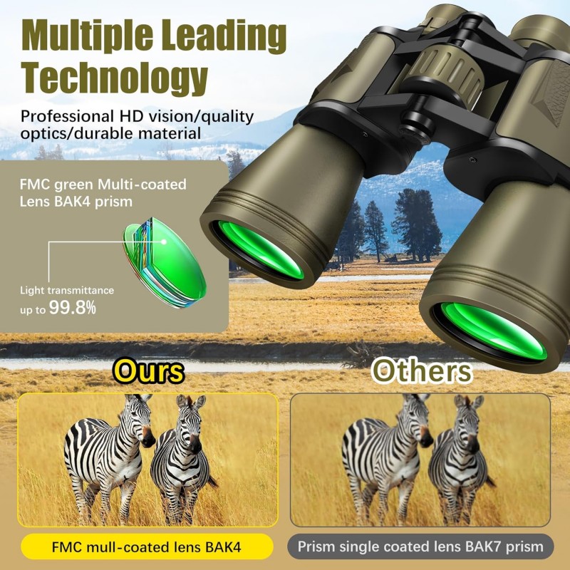 Fernglas HD 20 x 50 BAK4-Prism FMC-Objektiv Nachtsichtgerät kompaktes wasserdichtes großes Okular