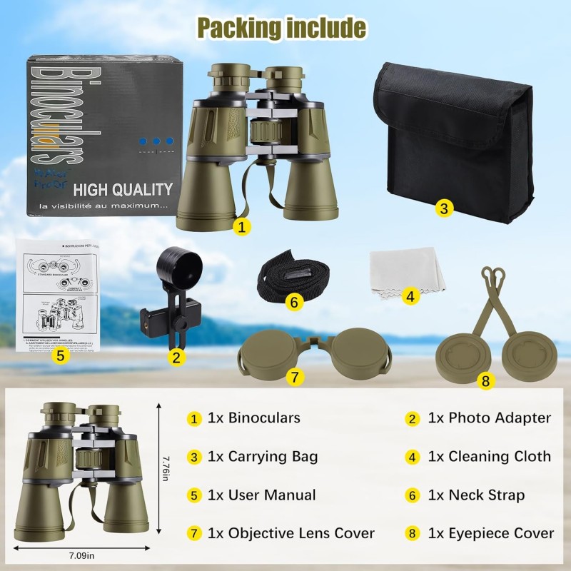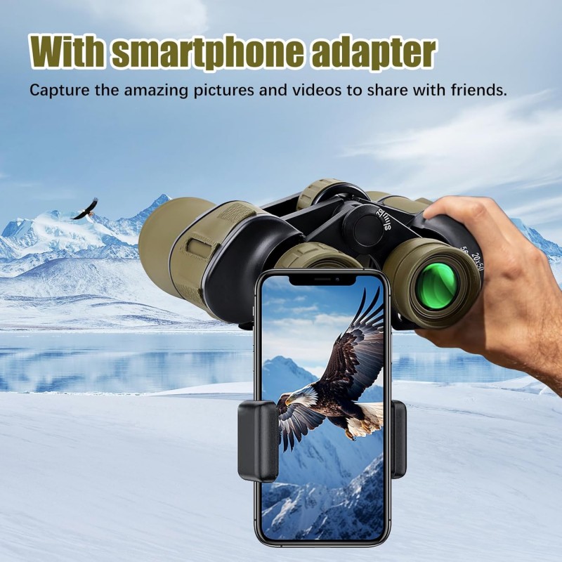 Fernglas HD 20 x 50 BAK4-Prism FMC-Objektiv Nachtsichtgerät kompaktes wasserdichtes großes Okular Jagd Vogelbeobachtung Smartphone Adapter