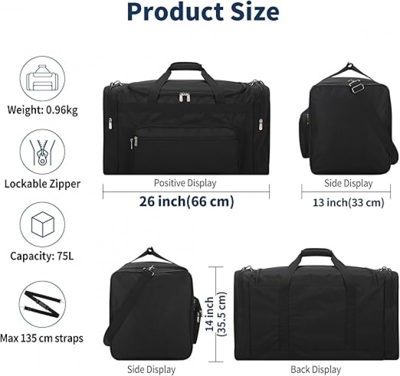 Fitnesstasche Sporttasche Reisetasche mit Schultergurt 55 L Weekender für Damen und Herren schwarz