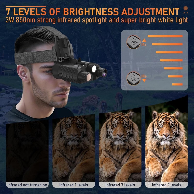 Nachtsichtgerät mit Kopfhalterung Nachtsichtkamera 4K-Videoaufzeichnung 36MP-Foto 7 Stufen Infrarot