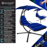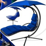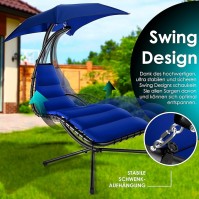 Schwebeliege Hängeliege Sonnenliege Relaxliege Hängeschaukelliege mit Sonnenschirm und Nackenkissen H 200 x L 194 x B 100 cm (Blau)