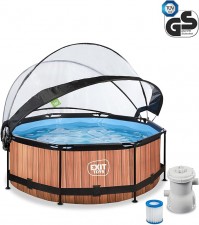 Freizeitpool Gartenpool Holzpool mit multifunktionaler Abdeckung Ø 300 x 76 cm runder Rahmenpool mit Kartuschenfilterpumpe einfacher Zugang stabiler Rahmen für sauberes und warmes Poolwasser