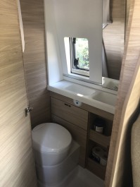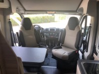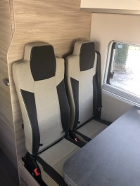 Das Wohnmobil zeichnet sich durch das geniale Manuelle-Hubbett und einer genialen EINZEL-SITZBANK mit ISOFIX im Fond aus.