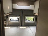 Ein großes Heckquerbett kombiniert mit einem genialen Hubbett vorne sowie ein perfektem Festbad mit Fenster.