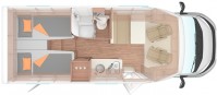 Kompakter Teilintegrierter für 2 Personen mit getrennten Betten und Automatisiertem Schaltgetriebe. inkl. Markise, Fahrradträger, CD/Mp3/USB Radio, Heckbetten ca, 2 x 201 x 86 cm, Naßzelle inkl. Dusche, Kühlschrank, Kochstelle, Gasheizung Truma Combi 4, Fahrerhausklimaanlage, Tempomat, Doppelairbag, ABS, ESP mit Hill-Holder,