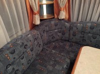 Wohnwagen mit Rundsitzgruppe und Doppelbett